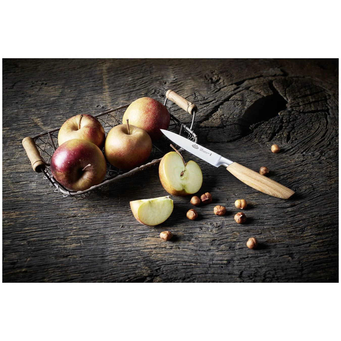 Het schilmes, ook garneermes genoemd, heeft een lemmet van 9 cm lang. Dit universele mes met scherpe punt is ideaal voor het snijden van fruit en groenten. U kunt het ook perfect gebruiken om te schillen, te versnijden en te garneren. Zelfs delicate kruiden hakt u met dit kleine keukenmes moeiteloos fijn. En dankzij de ergonomische greep in hout ligt dit mes uitstekend in de hand. Het is gemaakt van Duits roestvrij staal en bestand tegen corrosie.