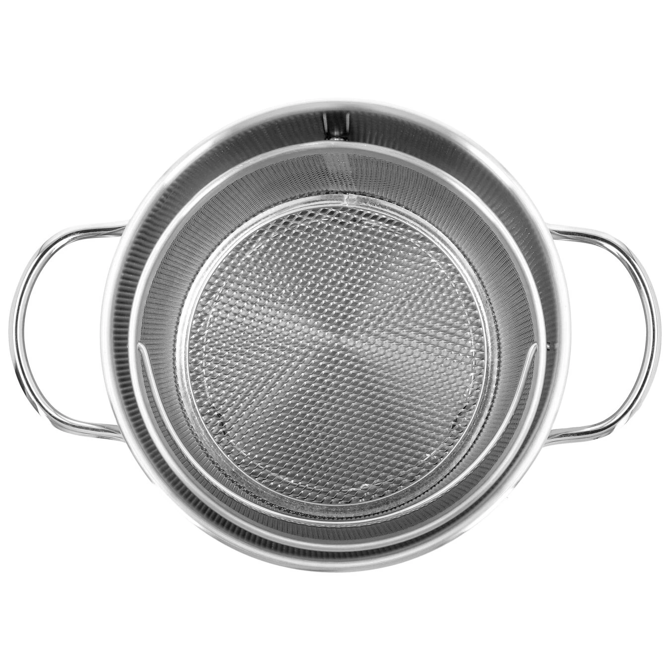 - Met een handige inzetmand uit roestvrij staal met verlekhaakje