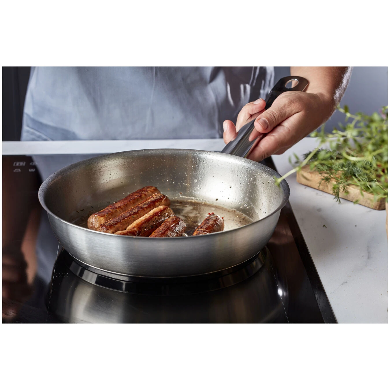 Met deze betrouwbare roestvrijstalen Resto 3 pan kun je dag in dag uit aan de slag. Denk aan spiegeleieren gebakken met een klontje roomboter, zodat ze dat onweerstaanbare crispy randje krijgen. Of een perfect gebakken steak voor bij je handgesneden frietjes, en groenteburgers voor tafelgenoten die vegetariër zijn. Je haalt het maximum aan smaak uit je ingrediënten en bent zeker van een goed bruin korstje. De kleine aanbaksels vormen een dankbare basis voor een lekkere saus.