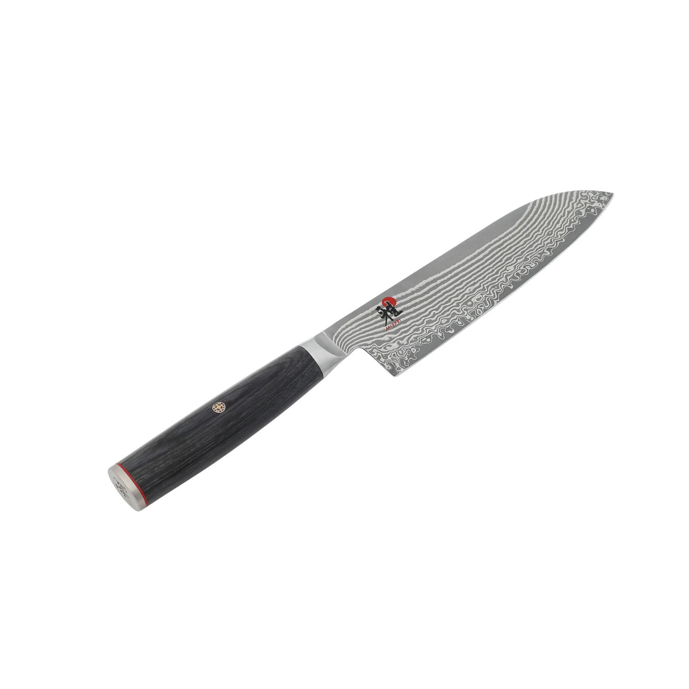 Deze Japanse santoku heeft een harde, fijne kern van koolstofstaal, waardoor de snijrand ongeëvenaard scherp is en dat ook zeer lang blijft. De naam ‘santoku’ betekent ‘drie deugden’ en met reden: u kunt het mes voor vlees, vis en groente gebruiken. Door de platte snijrand is de santoku ideaal om te hakken in plaats van de schommelbeweging die met Europese koksmessen wordt gemaakt. De kern van het mes is omgeven door 48 lagen staal die een uniek damastpatroon op het lemmet creëren. De snijrand is symmetrisch geslepen volgens de honbazuke-techniek en dus niet eenzijdig, waardoor het zowel voor links- als rechtshandige koks geschikt is. Omdat het mes geen vingerbeschermer heeft, kunt u de volledige lengte van de snijrand gebruiken. Het lemmet en het uiteinde van het handvat gaan naadloos in elkaar over en voelen comfortabel aan tijdens het snijden. Het gladde oppervlak voorkomt eeltvorming op de duim en wijsvinger. Draag optimaal zorg voor uw mes door het alleen met de hand te wassen, het goed te onderhouden en het met een slijpsteen aan te scherpen. Gebruik het niet op snijplanken van glas, keramiek of steen, want zo wordt de snijrand bot. Wij raden in plaats daarvan een snijplank van hout of bamboe aan.