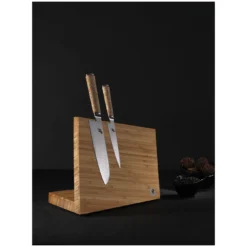 - Het mes heeft een kern van CMV60 staal omringd met 64 lagen roestvrij staal. Zo is het lemmet zeer hard en blijft het lang vlijmscherp
