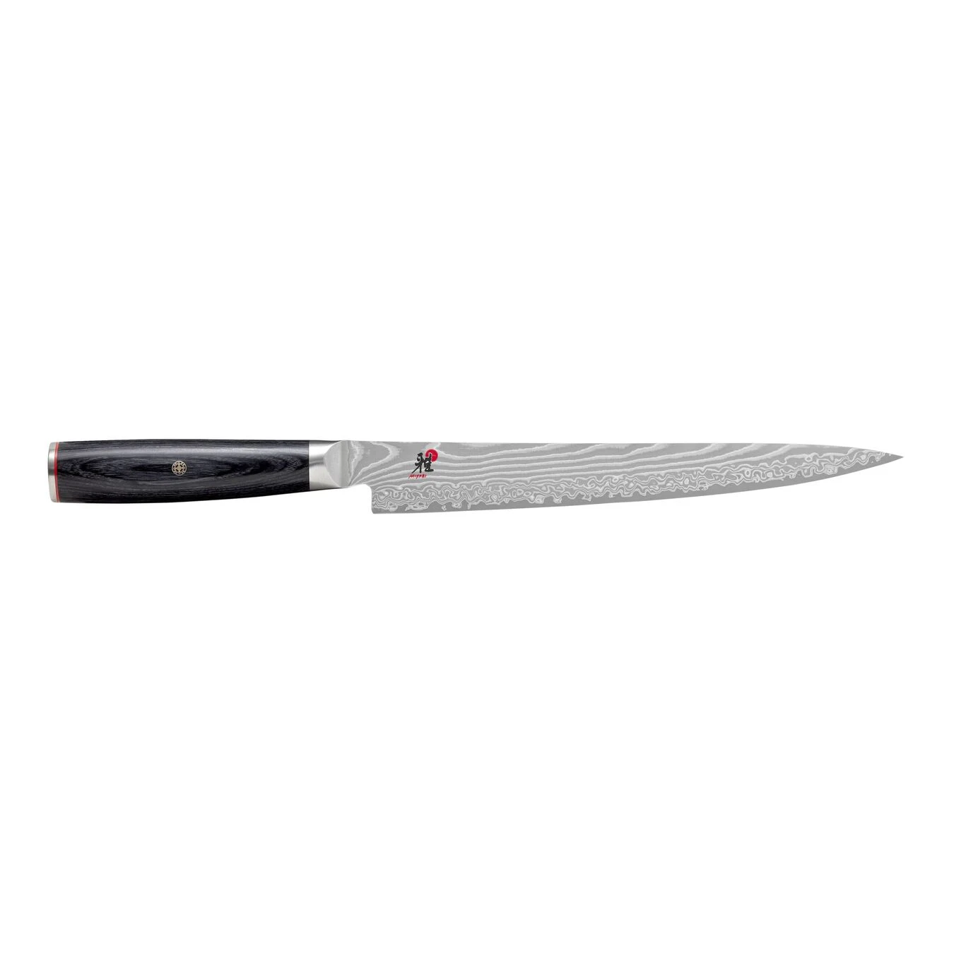 Perfect evenwicht, een uniek damastpatroon en een onvergelijkbare snijrand: dat is de sujihiki 5000FCD van Miyabi. Met zijn 24 cm lange lemmet is de sujihiki vergelijkbaar met een Europees trancheermes en dus ideaal om vlees en vis te snijden of trancheren.
