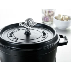 Deze ronde cocotte wordt in Frankrijk traditioneel gebruikt om ovenschotels vol smaak te bereiden, en nu kunt u dit ook in uw eigen keuken doen. Met een cocotte zet u niet alleen heel eenvoudig sappige vleesgerechten op tafel, zoals boeuf bourguignon, maar ook groenteschotels vol smaak. Denk maar aan een heerlijk geurende ratatouille. De braadpan laat alle ingrediënten langzaam en zachtjes garen, zodat de smaken volledig tot uiting komen en zich optimaal mengen. Met de grafietgrijze cocotte kookt u bovendien in stijl, want de kleur past bij zo goed als elke keuken. De gietijzeren cocottes van Staub zijn aan de binnenzijde met matzwart email afgewerkt. Deze laag versterkt de natuurlijke smaken van een gerecht en is extreem robuust, krasbestendig en gemakkelijk te reinigen, net zoals het gietijzer zelf. De ronde cocotte van Staub heeft een diameter van 20 cm, is ongeveer 14 cm hoog en heeft een inhoud van 2,2 l. Met deze braadpan bereidt u verfijnde gerechten op elk kookoppervlak, ook op inductie en in de oven. Het email verbetert telkens wanneer u de pot gebruikt. Nodig uw vrienden dus gerust wat vaker uit om te genieten van de overheerlijke gerechten die u uit uw nieuwe gietijzeren cocotte tovert!